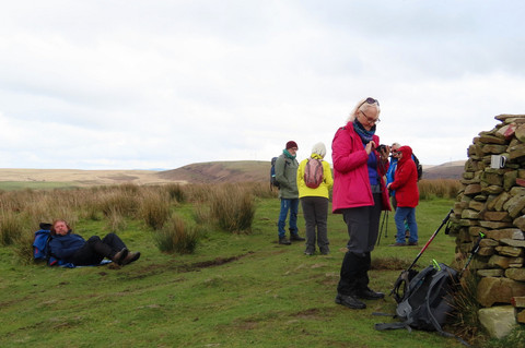 Another little cairn - Mynydd y Gwair wind turbines in sight